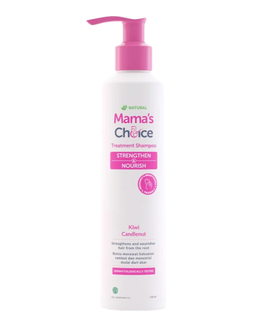 Mama’s Choice Treatment Shampoo merupakan hair care lokal pertama di Indonesia yang aman untuk ibu hamil dan menyusui. Bahkan sudah 100% bebas toksin bahan kimia berbahaya dan tersertifikasi halal. Sampo ini mengandung ekstrak kiwi untuk merangsang pertumbuhan rambut. Ada juga Candlenut atau biji kemiri untuk menguatkan akar rambut. Serta, Green pea yang dapat mengurangi kerontokan rambut saat hamil.