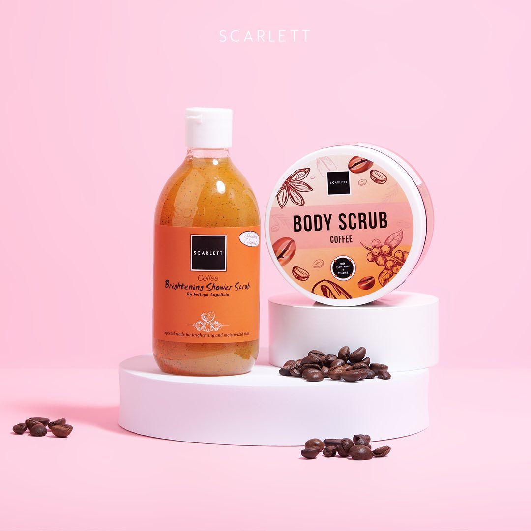 Produk Scarlett varian terunik ini memiliki buliran scrub yang halus, sehingga membantu untuk mengangkat sel-sel kulit mati. Selain itu, Scarlett Whitening Shower Scrub Coffee kaya akan kandungan Collagen, Vitamin E, dan Glutathion (Mother of Antioxidant) yang dapat membersihkan kulit  tubuh secara maksimal.