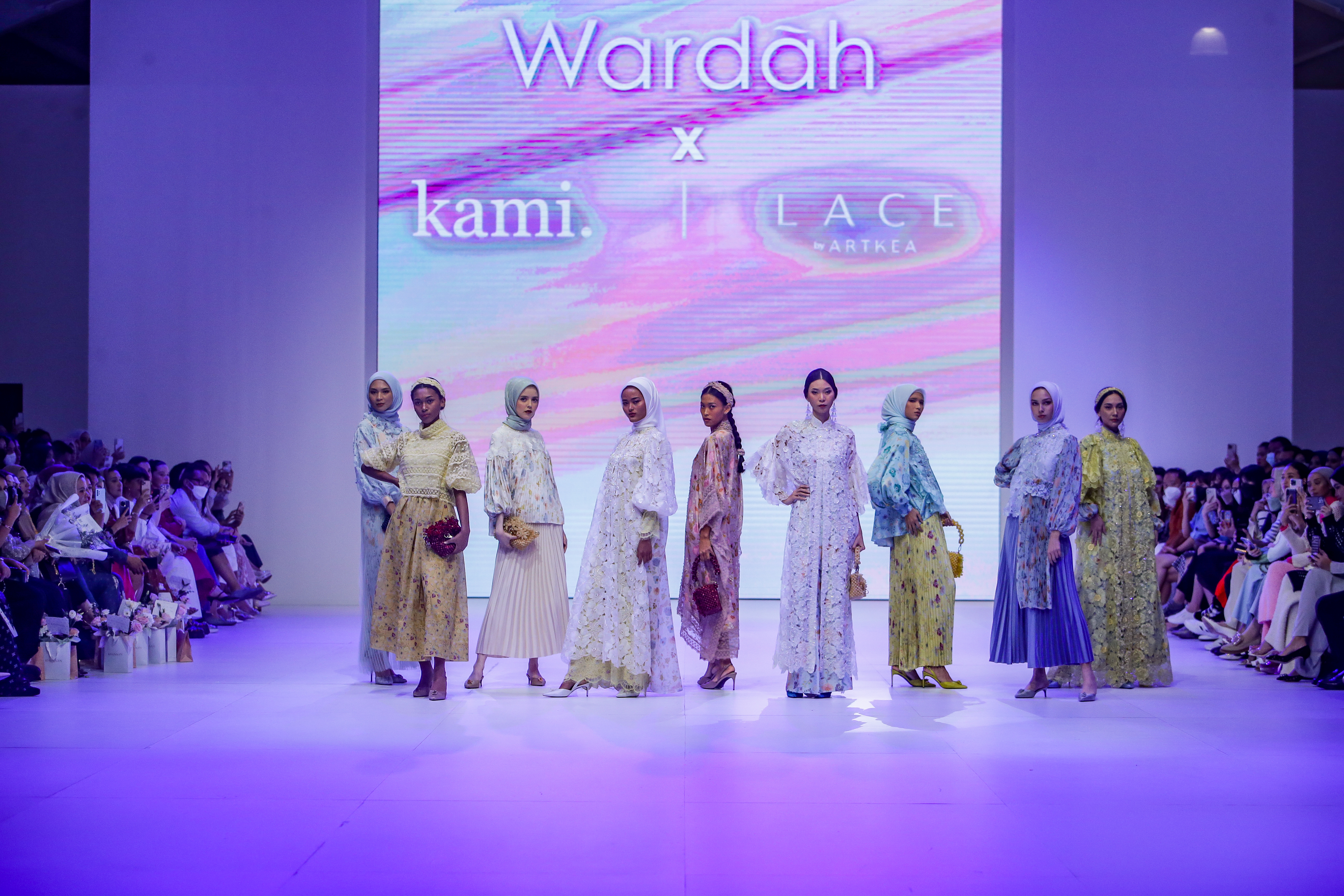 OCTOBER 29: Closing parade of WARDAH featuring Kami x Lace By Artkea during Jakarta Fashion Week 2023 in City Hall – Pondok Indah Mall 3, Jakarta. Eksklusif kolaborasi ini menghadirkan bawahan dengan motif bunga-bunga yang menggambarkan taman.