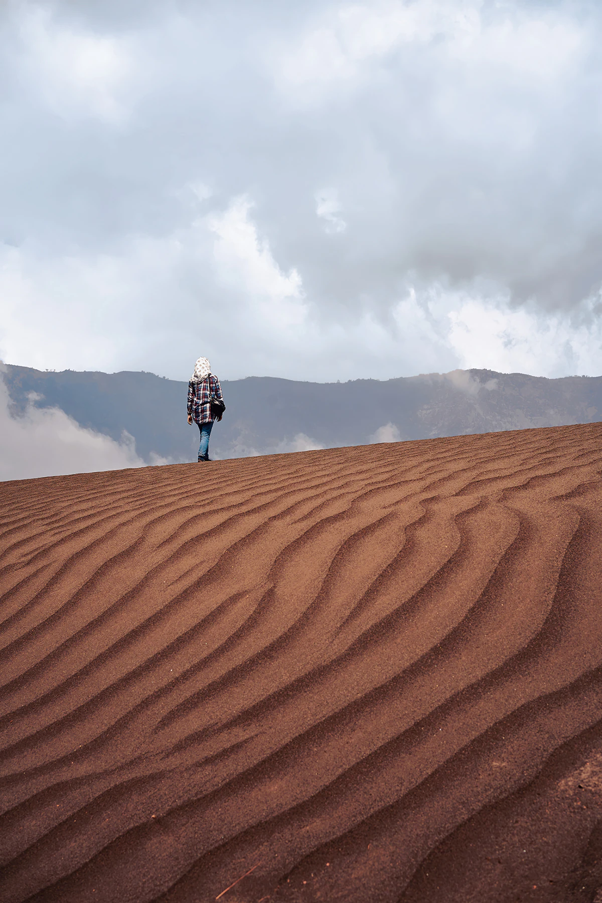 Image: Wonderful Indonesia Hamparan pasir hitam luas yang membentang mengelilingi pegunungan. Lokasi ini banyak diburu untuk foto instagenik, foto pre-wedding dan latar film. Scarflover disarankan datang di atas pukul 9 pagi untuk merasakan sensasi awan yang bergerak dari tebing Kaldera Bromo