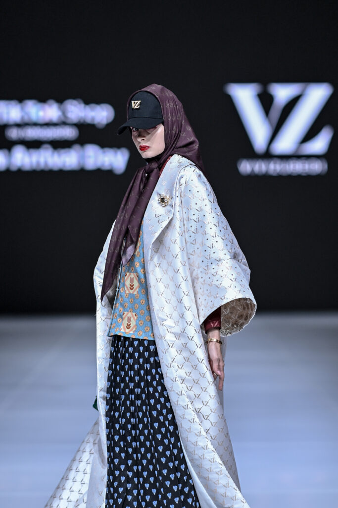 Pergeseran ini bukan sekadar soal warna, melainkan refleksi dari perjalanan panjang label VZ dalam mengeksplorasi esensi keanggunan dan kekuatan perempuan. Potongan loose dengan aksen monogram ikonik VZ tampil elegan, mempertegas karakter modest yang berkelas dan abadi.