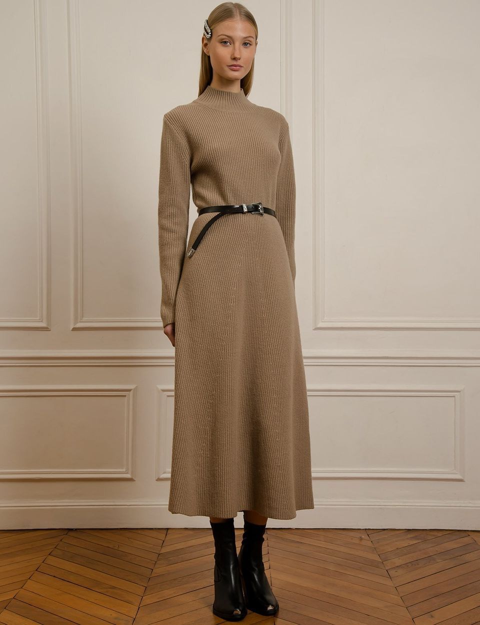 Salah satu cara mudah untuk memberi definisi pada baju gaun knit atau sweater knit Anda yang terlalu besar adalah dengan membungkusnya dengan ikat pinggang yang menonjol. Ini juga memberikan bentuk yang sangat bagus dan keseimbangan yang bagus untuk tampilan.