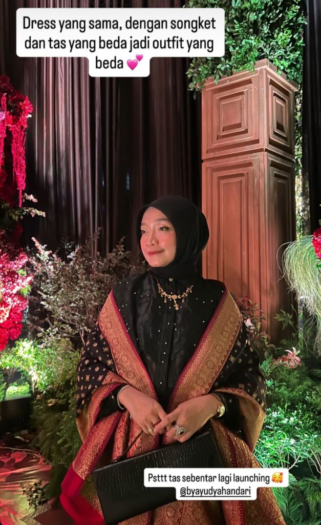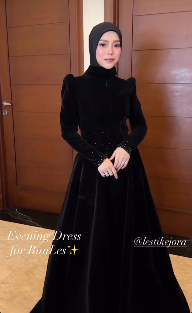 Lesti Kejora juga turut mencuri perhatian dengan penampilannya yang anggun dan elegan. Ia tampil dalam balutan busana bernuansa mewah dengan detail yang manis, dipadukan dengan styling hijab yang rapi dan feminin. Aura lembut yang khas dari Lesti membuat tampilannya terlihat semakin memikat dan menjadi inspirasi outfit kondangan yang sopan namun tetap fashionable.