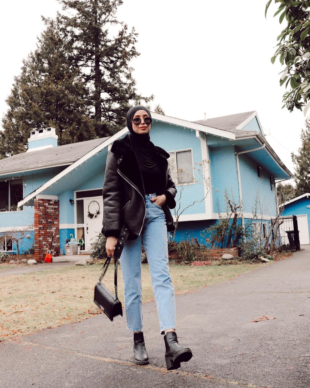 Berikut ini ada satu inspirasi style OOTD dari Sali Al Digs yang kenakan jaket kulit berwarna hitam.