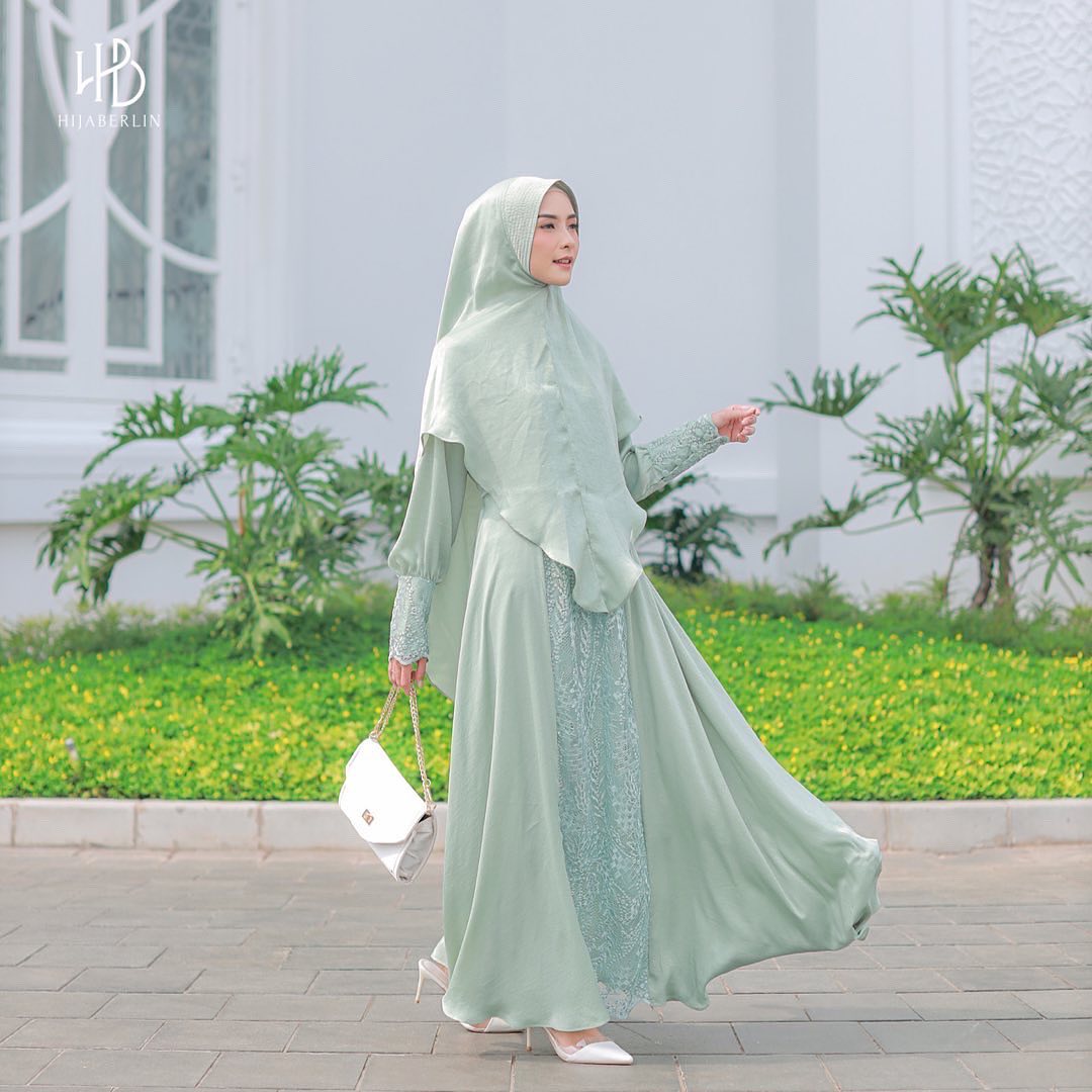 3. Terakhir, ada gamis dari Hijab Berlin pada koleksi Almahira Dress untuk ide outfit of the day ke pengajian atau hari raya. Gamis berwarna hijau mint dengan brokat pada pergelangan tangan dan bagian bawah gamis. Scarf Lovers dapat memadukan warna putih pada tas selempang. Kemudian, sepatu hak berwarna putih dengan sedikit warna emas. Untuk informasi lebih lanjut Anda dapat mengunjungi https://hijaberlin.com/ atau Instagram @hijaberlin.os