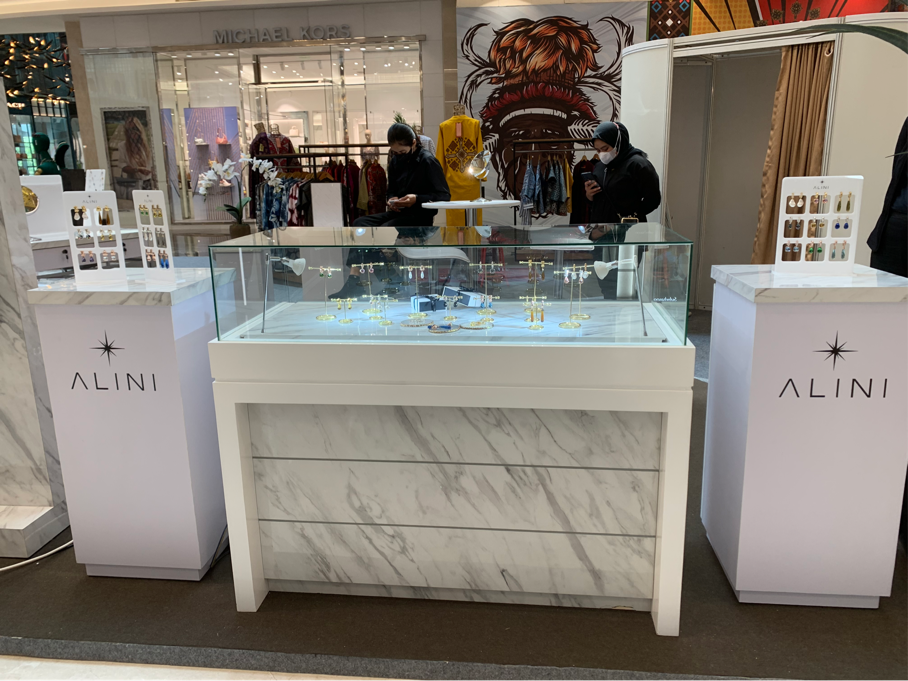 Untuk menyempurnakan gaya penampilan Anda, tersedia pula booth perhiasan anting Alini dengan model Huggies dan Droops serta sistem Twistlock ™, suatu sistem yang memudahkan kaum wanita untuk mengganti pilihan anting mereka dalam waktu singkat. Hal ini tentu saja, meringankan beban kaum wanita untuk tidak perlu lagi membawa anting secara berlebihan dalam berbagai aktivitas kesehariannya.
