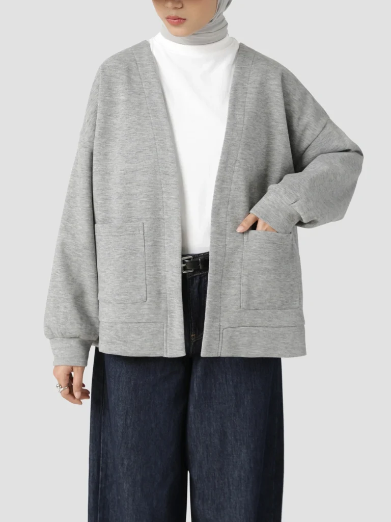 Menghadirkan interpretasi workwear yang santai namun tetap rapi, Saba Modest menawarkan siluet longgar dengan pendekatan layering yang effortless. Potongan outer bernuansa abu-abu berpadu dengan inner basic menciptakan tampilan yang nyaman dikenakan sepanjang hari, terutama saat cuaca mendung yang cenderung sejuk. Gaya ini merepresentasikan workwear modern yang tidak kaku, cocok untuk aktivitas kerja yang dinamis tanpa kehilangan kesan polished.
