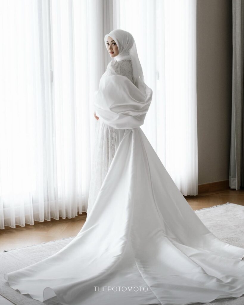 Tak hanya itu, Indah memilih gaun panjang berwarna putih dari label miliknya sendiri, @nadapuspita.official. Busana tersebut diperkaya dengan tambahan cape yang menjuntai lembut, menciptakan siluet yang anggun tanpa kesan berlebihan. Pilihan warna dan desain ini semakin menegaskan nuansa sakral dan istimewa dari momen lamaran tersebut.
