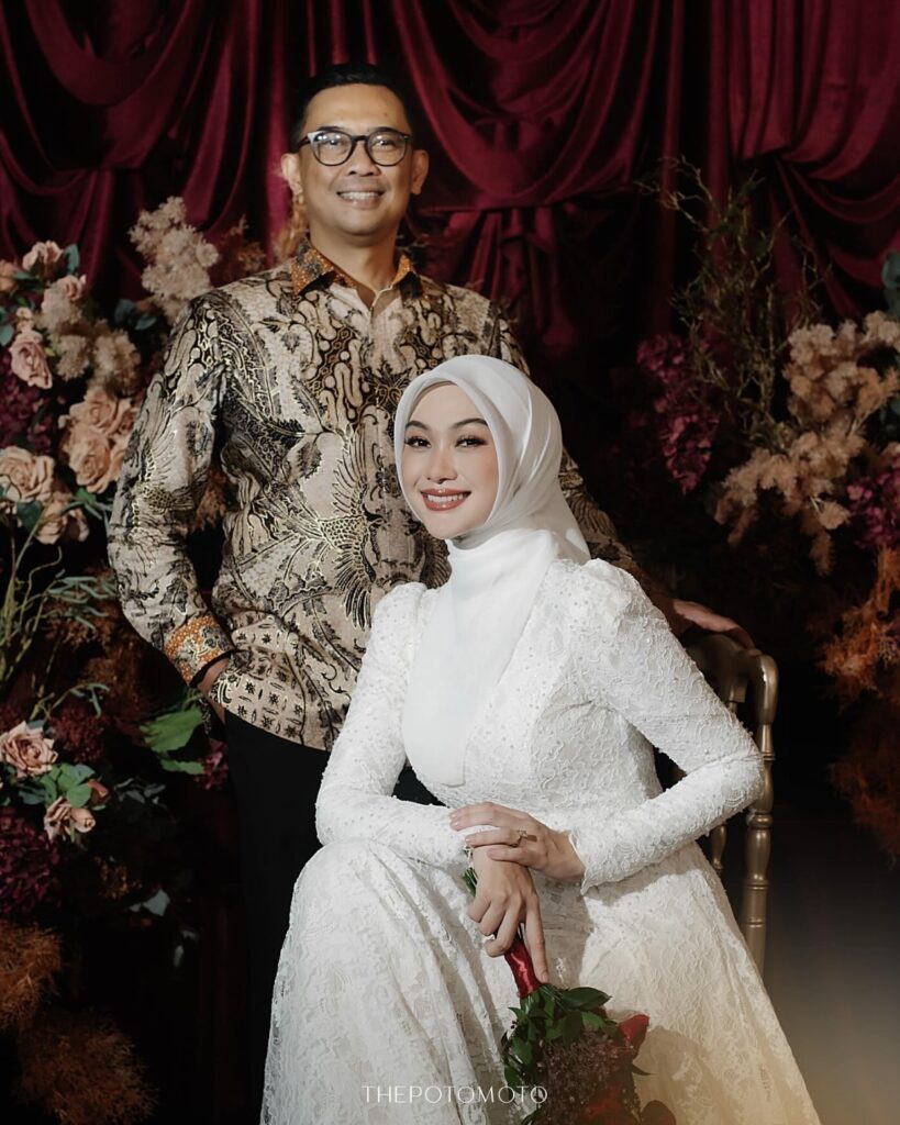 Sementara itu, Dhani Yahya tampil rapi dan sopan mengenakan batik yang dipadukan dengan celana hitam. Pilihan busananya terlihat serasi dengan konsep acara, sekaligus melengkapi penampilan Indah secara harmonis.