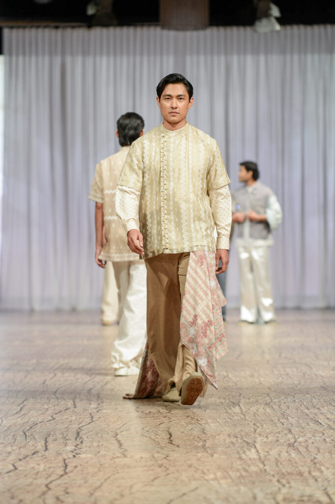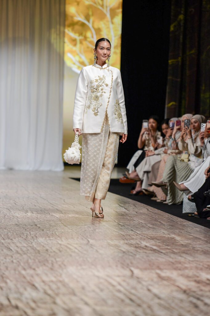 Koleksi ini semakin diperindah dengan permainan tekstur yang lembut dan mewah. Detail lace, brukat, hingga organza hadir sebagai aksen yang membuat setiap look tampak refined, sekaligus memberikan kesan Raya yang anggun dan timeless. MUDA seolah ingin menunjukkan bahwa tradisi dapat hadir dalam bentuk yang lebih segar, tanpa harus terjebak dalam interpretasi yang kaku.