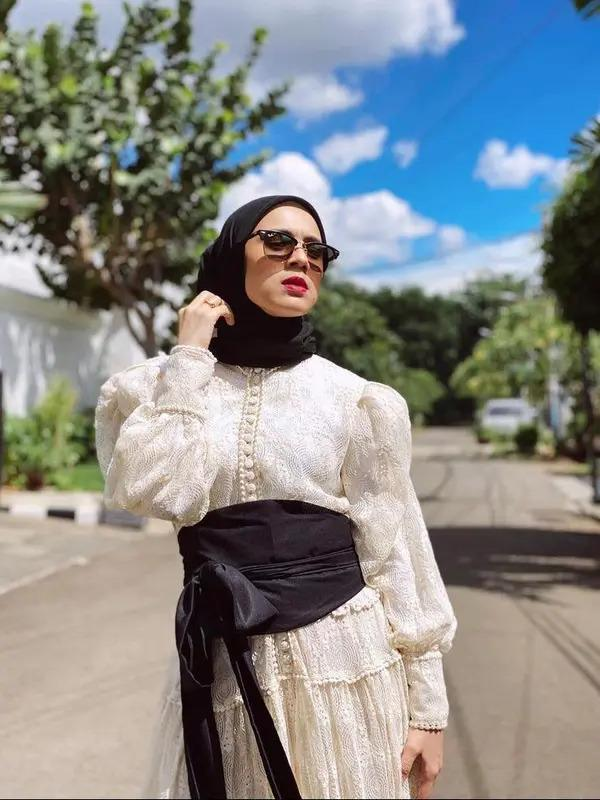 Image: missnyctagina Penyiar Nycta Gina memadukan gaun lace berlengan puff sleeves dengan obi blet polos berwarna hitam. Terkesan elegan dengan deretan kancing di bagian depan.