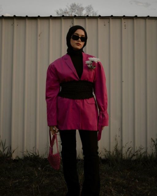 Image: anaoctarina (Instagram) Siapa sangka jika blazer pun masih bisa dipadukan dengan obi belt. Seperti contoh outfit yang satu ini blazer berwarna pink neon senada dengan beads bag dan obi belt polos berwarna hitam senada dengan celana bahan. Menambah kesan formal tambah sylish.