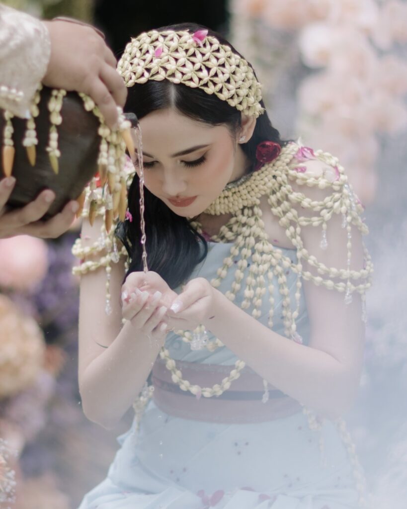 Keseluruhan elemen menghadirkan suasana romantis sekaligus menunjukkan perencanaan konsep yang matang hingga ke detail terkecil. Lewat momen ini, Syifa Hadju tidak hanya menjalani tradisi, tetapi juga menghadirkan visual yang elegan dan penuh rasa di mana setiap detail terasa selaras dalam satu narasi yang utuh.