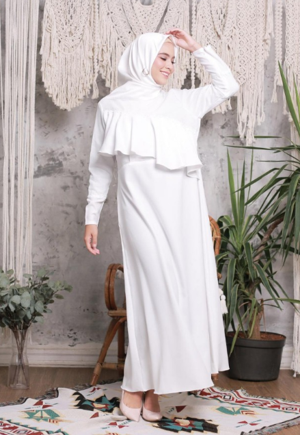 Dress putih dari Hijab Ellysa ini kelihatan anggun banget. Model dress A line ini memberikan efek langsing bagi pemakainya. Ditambah lagi, dress ini juga dilengkapi tali pinggang dan sangat jatuh saat dipakai. Dress yang diberi nama Emily Exclusive Tile Ruffle Dress White ini memiliki detail saku di bagian kanan dan aksel ruffle menggunakan tile putih di dada dan tangan. Di pergelangan tangan dan garis dada simetris terdapat renda putih cantik. Jangan khawatir, dress ini juga busui friendly dengan belahan dikiri kanan dan juga wudhu friendly loh.