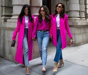 Image: sydneystyle.com Atasan berupa blazer atau kemeja warna pink fuchsia dipadukan dengan jeans memberi kesan boyish tetapi tetap feminin bikin penampilan sangat cocok.