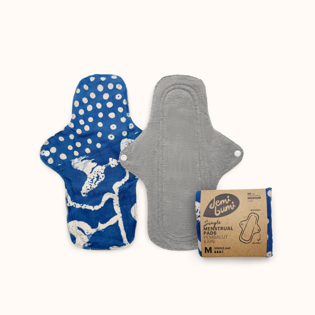 Demi Bumi dikenal sebagai reusable cotton pads yang bagus. Menspad memiliki 2 jenis, yaitu Single Pad Waterproof dan Insert Reffil. Tersedia juga tiga ukuran, yaitu S dengan panjang 20 cm, M dengan panjang 26 cm, dan L dengan panjang 32 cm.