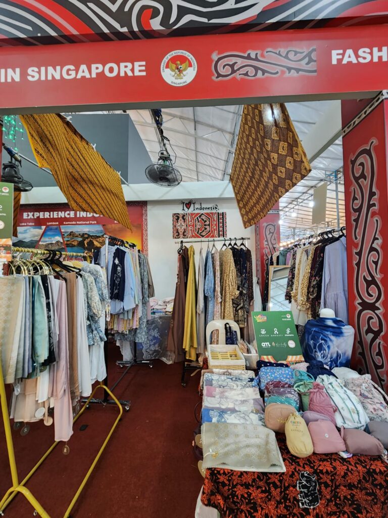 Booth modest fashion hasil kurasi Scarf Media dapat ditemukan di area Tourism Indonesia – Embassy in Singapore Fashion Booth, yang menjadi bagian dari dukungan resmi KBRI Singapura. Inisiatif ini powered by KBRI Singapura dan berkolaborasi dengan Modest Space Singapore sebagai mitra lokal, menghadirkan sinergi antara pelaku industri, perwakilan diplomatik, dan platform modest fashion regional.