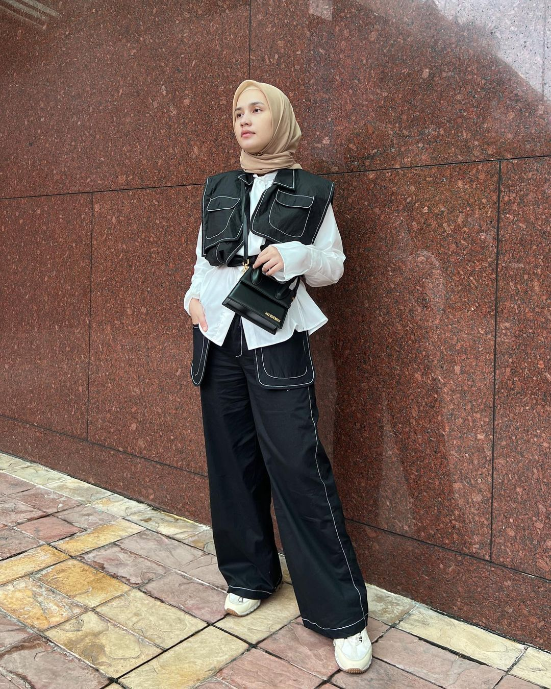 Vest atau rompi bisa jadi pilihan outer buat Scarf Lover yang ingin tampil kasual. Seperti gaya busana selebgram Dwi Handayani Syah Putri yang akrab disapa Dwi Handa.