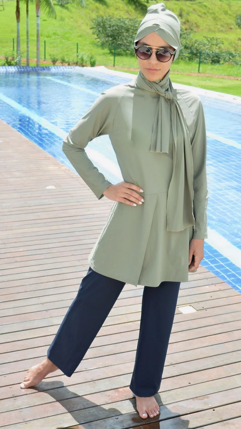 Image: modanisa.com Siapa bilang pakaian renang harus memamerkan tubuh indah Anda agar terlihat bagus? Anda masih bisa mengenakan pakaian renang longgar yang cukup nyaman bagi Anda saat berenang.