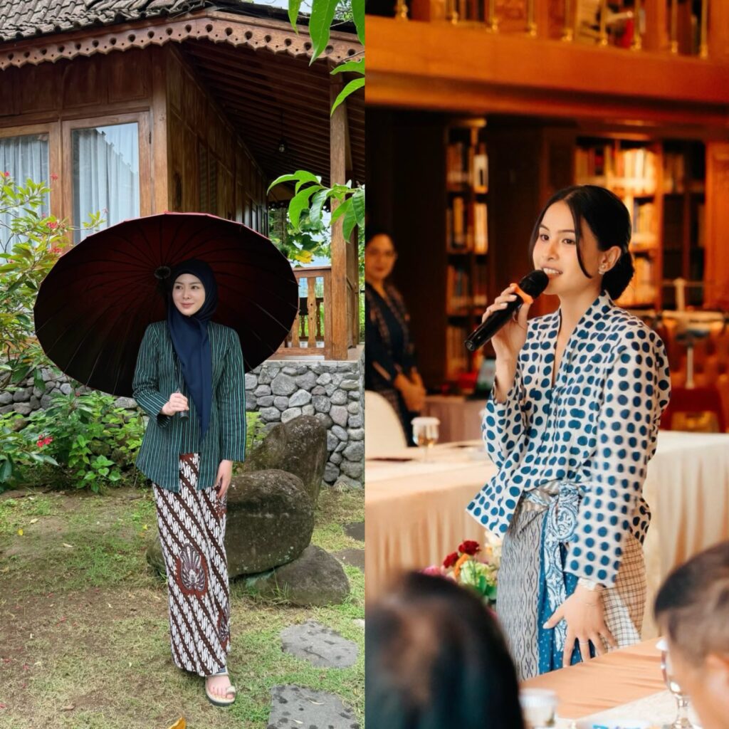 Kebaya tidak selalu harus dipadukan dengan rok atau kain. Di tahun 2026, memadukan kebaya dengan celana justru menjadi tren yang semakin populer.
