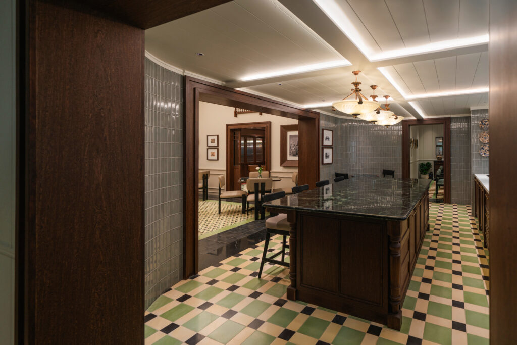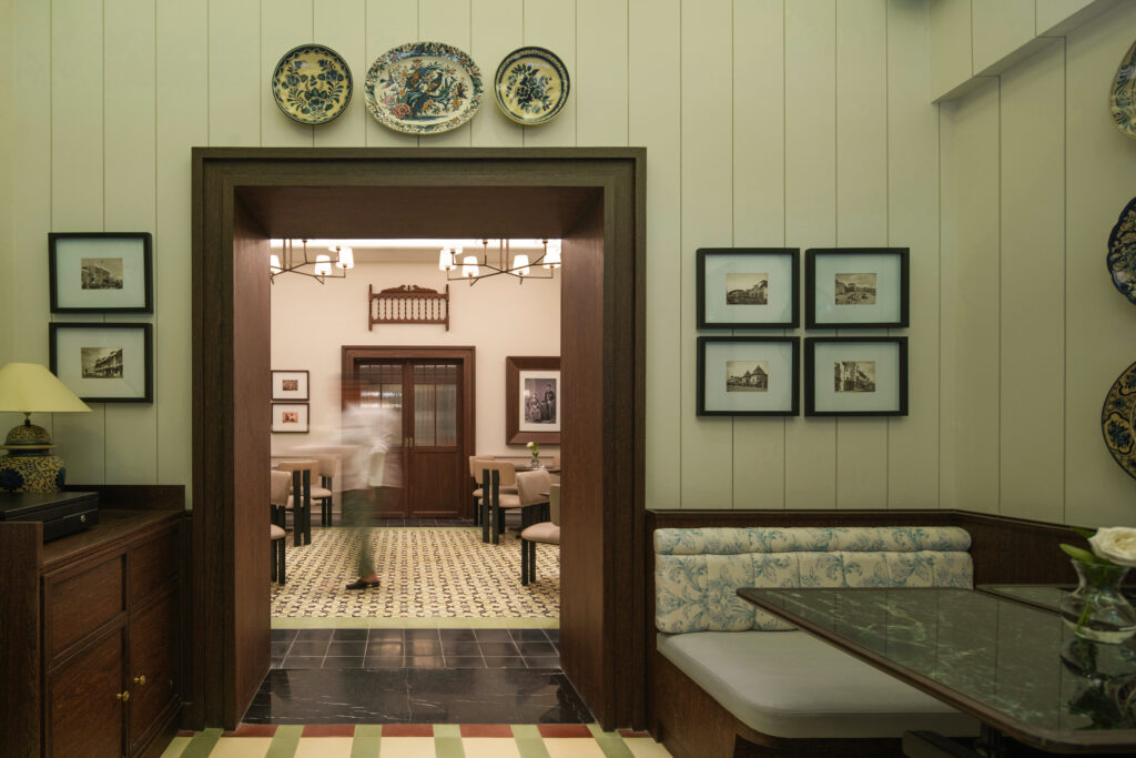 Lantai bermotif khas dan lampu gantung yang elegan semakin memperkuat nuansa heritage yang diusung. Bahkan, area dapur terbuka dengan konsep bar memberikan sentuhan modern tanpa menghilangkan kesan rumahan. Seluruh elemen ini berpadu menciptakan pengalaman bersantap yang terasa hangat, akrab, dan penuh cerita