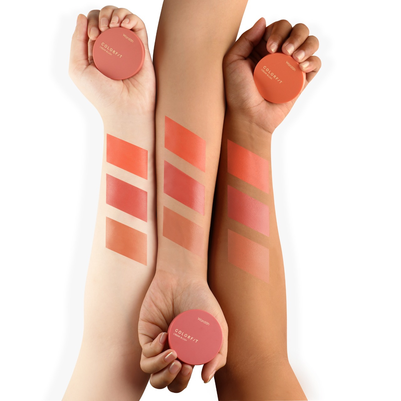 Colorfit Cream Blush memiliki tekstur cream dan powder yang mengandung Vitamin E dengan konsistensi yang Airy Light dan Smooth Creamy sehingga mudah diaplikasikan setelah menggunakan foundation maupun bedak. Cream blush ini tersedia dalam 3 warna, Summer Peach, Merry Mauve, & Sand Coral. Pigementasinya yang bagus membuat blush on ini Glow Colour Pigment pada blush ini dapat tahan lebih lama hingga 8 jam.